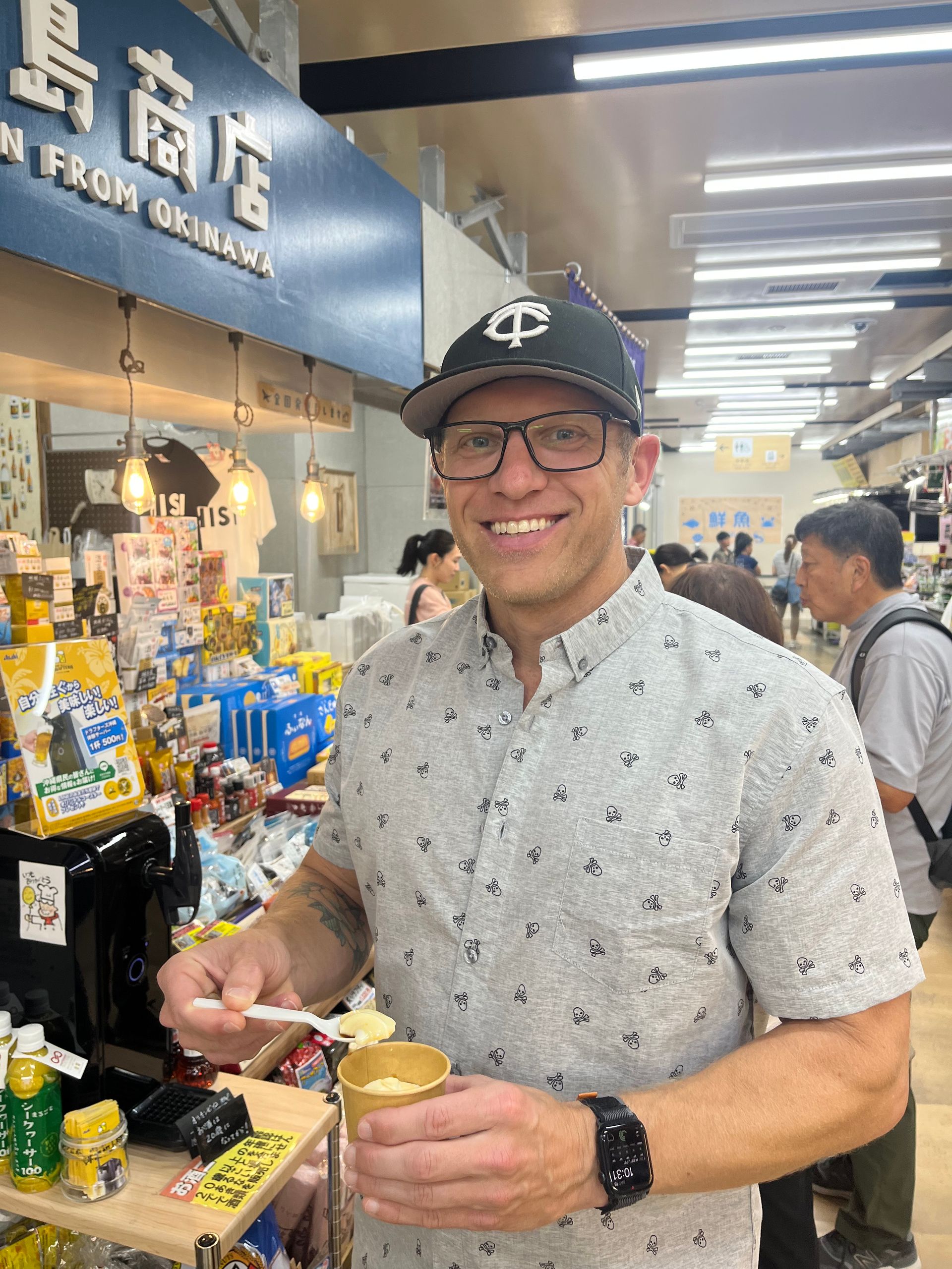 Aki is a very knowledgeable tour guide and offered an excellent variety of stops. We were able to taste many authentic Okinawan offerings, including cane juice, sata andagi, peanut tofu, fruit, Okinawan soba, musubi, and muchi. He took us to back side cafes that you would generally be able to find, unless you knew about it. All stops were great, and a lot of tastings. Speaks very good English.